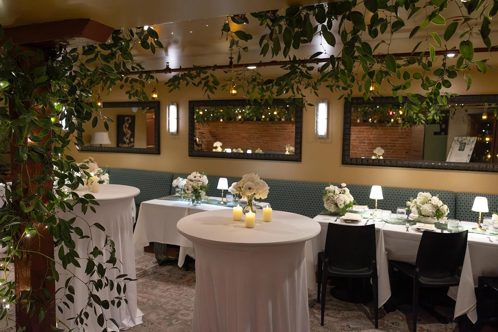 In the evenings, flickering candlelight and warmth from the heaters make Grappolo an especially stunning space to gather and enjoy a delicious meal. This spacious patio can be booked for private events ranging from 50-70 guests.